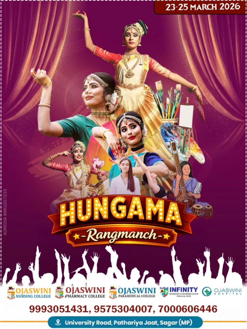 Experience the ultimate cultural extravaganza – _Hungama Rangmanch_ on 23–25 March 2026 at University Road, Pathariya Jaat, Sagar (MP). Dance, music, art & drama in full swing! Organised by Ojaswini Colleges & Hospital.Read More
